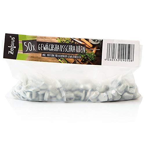Zelsius - Viti per serra (50 pezzi) con dadi, in acciaio anticorrosione, bulloni, viti a testa piatta, viti a testa piatta per tutti i tipi di serre