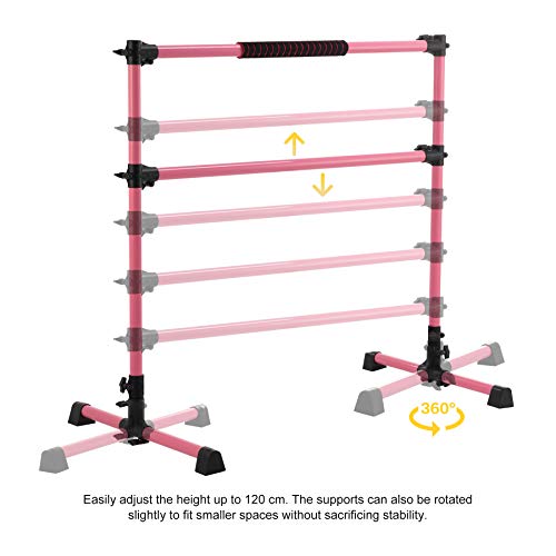 Z ZELUS Barra Danza Classica Portatile Doppia Barra per Esercizi di Danza 1.2m Sbarra da Ginnastica Regolabile Allenamento di Flessibilità Fitness con Fascia Elastica e Borsa
