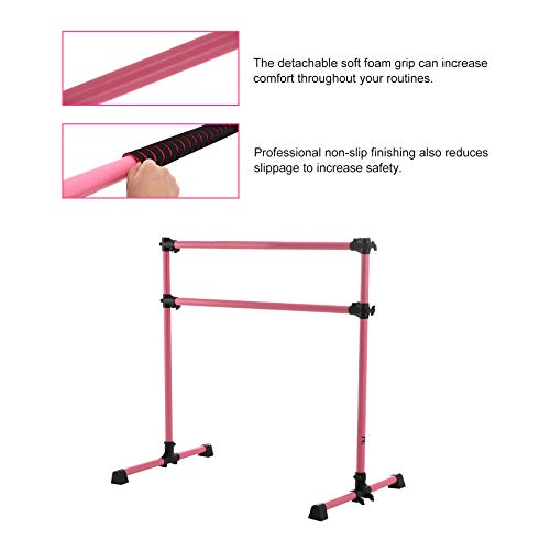 ZELUS Sbarra Danza Portatile Doppia Barra da Balletto Altezza Regolabile Sbarra Classica per Casa con Fascia Elastica (Rosa 1,2m)