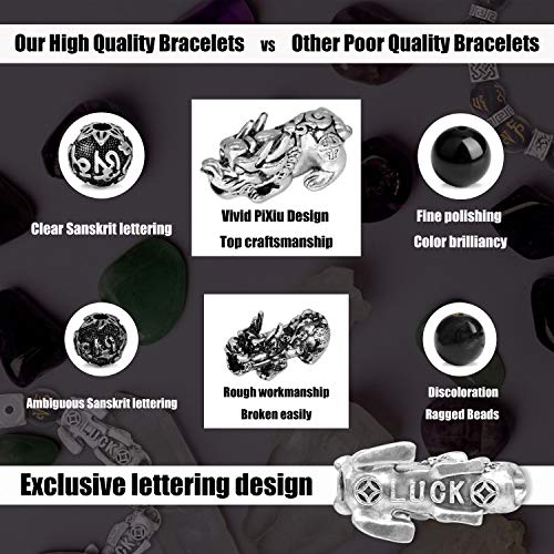 materiale: perline sanscrito intagliate a mano e lega placcata in argento. Il bracciale feng shui è dotato di un elastico, robusto e durevole, elastico e può essere regolato in modo flessibile, adatto sia per uomini che per donne.