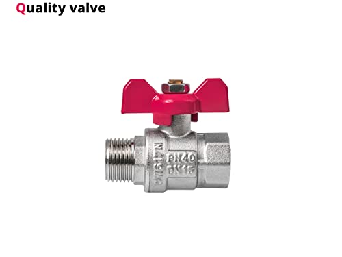 ZencQ 1/2" Valvola a Sfera MF Maniglia Farfalla, Valvola in Ottone Filettatura Interna x Esterna- 40 PN /40 Bar DN15 con Maniglia in Lega di Alluminio e sede in PTFE.