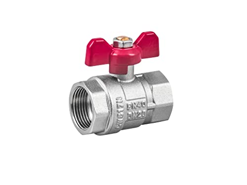 ZencQ 3/4" Valvola a Sfera FF Maniglia Farfalla, Valvola in Ottone Filettatura Interna - 40PN / 40 Bar DN20 con Maniglia in Lega di Alluminio e sede in PTFE.