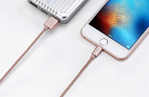 Zendure Cavo USB Phone Ricarica/Sincronizzazione [Certificato di MFi] Nylon Intrecciato Coperta di 30cm per Phone X, 8 Plus, Pad Air e PRO etc (Oro Rosa)