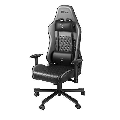 ZENEZ Sedia da gioco da massaggio per computer Sedia da gioco ergonomica Sedia da gioco robusta grande e alta Poggiatesta stile corsa e supporto lombare Grigio