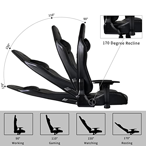 【Funzione regolabile, supporto completo per il corpo】 Reclinazione di 90 ~ 160 °, bracciolo da 3,4 pollici regolabile in altezza, cuscino poggiatesta rimovibile e cuscino lombare, funzione di oscillazione. Queste funzioni forniscono un supporto completo per la vita, la parte superiore delle spalle, le gambe e persino il collo durante le lunghe sessioni di giochi al computer o di lavoro d'ufficio, molto meglio di una normale sedia.