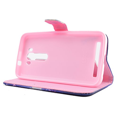 Asus ZenFone 2 Laser ZE500KL 5.0 Custodia, Ukayfe Luxury Wallet Case Cover in PU pelle dipinto Protettiva Portafoglio Flip Cover, D Luxury Bling Strass (Rhinestones) Diamonds Bow Bone Custodia in Pelle Flip Case Cover Portafoglio Con Card Holders per Asus ZenFone 2 Laser ZE500KL 5.0 con Chiusura Magnetica Protettivo Copertura +1 pcs Stilo Penna-fiori viola