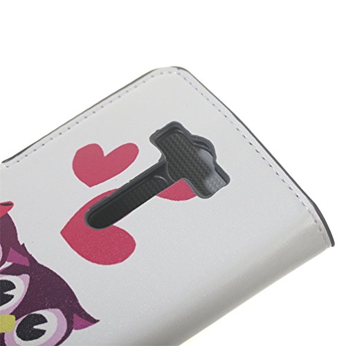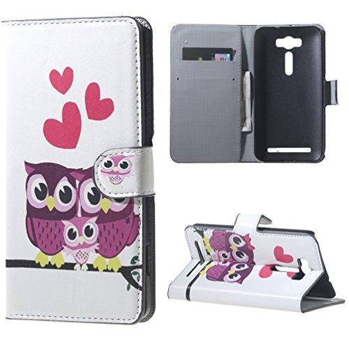Asus Zenfone 2 Laser ZE500KL Pelle,Custodia in Pelle per Asus Zenfone 2 Laser ZE500KG/ ZE500KL Smartphone Case Cever Portafoglio con Funzione di Supporto,Tre Gufo viola