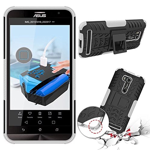 SMTR Zenfone Go ZB551KL (5.5") Case Dual Layer Custodia ibrida Rigida Morbido Armatura resistente agli urti con Supporto e asportabile di protezione per Zenfone Go ZB551KL Bianco