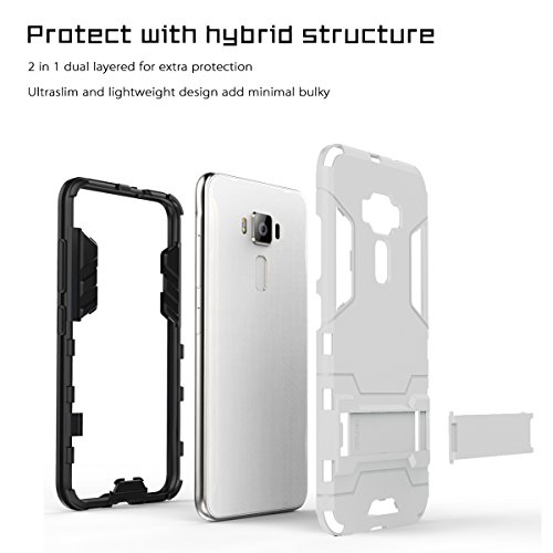 Zenfone 3 ZE520KL 5.2" Cover,bdeals 2in1 Dual Layer Ibrida [Kickstand Series] Morbido Full Body Custodia Protettiva Bumper Cover per Zenfone 3 ZE520KL 5.2", Argentea