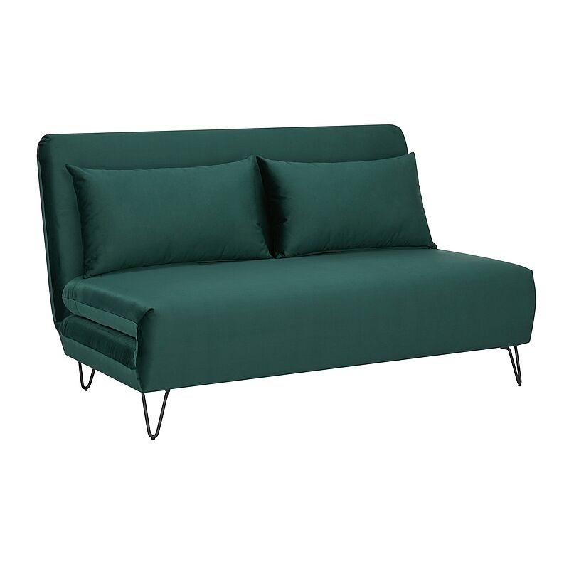 Questo divano letto è un mobile pratico e funzionale rivestito in velluto. Il mobile poggia su piccole gambe in metallo curvato. Grazie all'uso del metallo, i mobili sono resistenti e stabili. Quando è completamente aperto, il divano offre una superficie notte di 141x191 cm. PUNTI FORTI: stile moderno Due cuscini inclusi Finitura: rivestimento in velluto verde, gambe in metallo nero funzione del sonno Mobili durevoli e stabili. CARATTERISTICHE TECNICHE: profondità 90 cm Larghezza 141 cm altezza 81 cm Materiale: velluto, metallo un autoassemblaggio