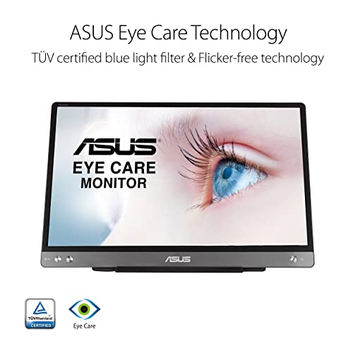 ASUS ZenScreen MB14AC Portable USB Monitor, 14", IPS Full HD, Hybrid Signal Solution, USB Type-C, Flicker Free, Blue Light Filter, Anti-glare surface