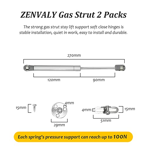 ✅ 【Design Accurato】— La parte superiore del puntone a gas ZENVALY è girevole e facile da regolare. La robusta molla a gas viene utilizzata specialmente per limitare la velocità di discesa e aiuta la porta dell'armadio a chiudersi lentamente e fa meno rumore.