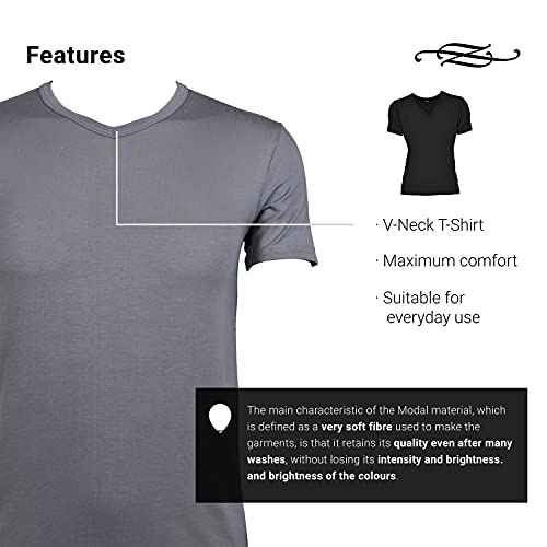 Z ZENZERO' 1959-1 Pack T-Shirt Uomo Scollo a V - Tinta Unita - in Cotone Modal - Tessuto Elasticizzato (Perla, L)