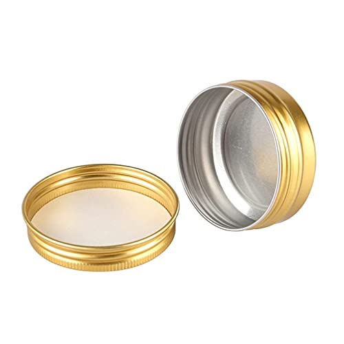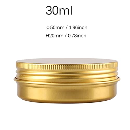 ZEOABSY 10 Pezzi Barattoli di alluminio 30ml a Vite Oro Scatola in Alluminio Forma Rotondo, Vasetti per DIY Candele Cosmetico Caramella Gadget Balsamo Labbra, 1x Etichette e 5x Spatola