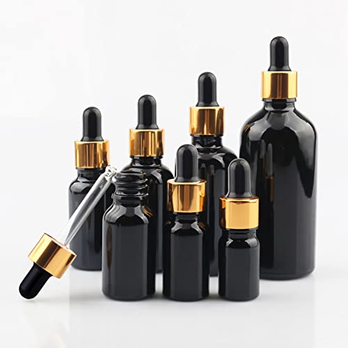 ZEOABSY 4 Pezzi 50 ml Nero Bottiglie Contagocce di Vetro, Voute Bottigliette Flaconi in Vetro con Pipette Oro, Contenitori di Aromaterapia, Viaggio Portatile per Oli Essenziali