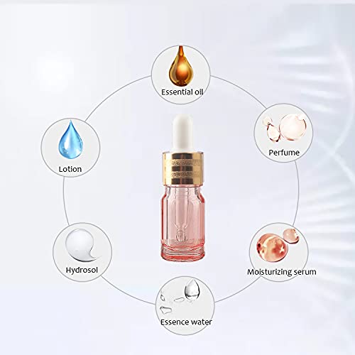 ZEOABSY 4 Pezzi 5 ml Vuote contagocce bottiglie di vetro, in vetro Rosa con anello a vite Oro,riutilizzabili per Olio Essenziale, Aromaterapia,oli essenziali,Laboratorio