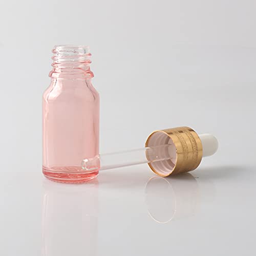 ZEOABSY 4 Pezzi 10 ml Vuote contagocce bottiglie di vetro, in vetro Rosa con anello a vite Oro,riutilizzabili per Olio Essenziale, Aromaterapia,oli essenziali,Laboratorio
