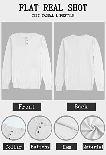 ZeoVan Maglione Uomo Cotone Collo Henley Maglia Pullover Manica Lunga Inverno Slim Basic Bianco M