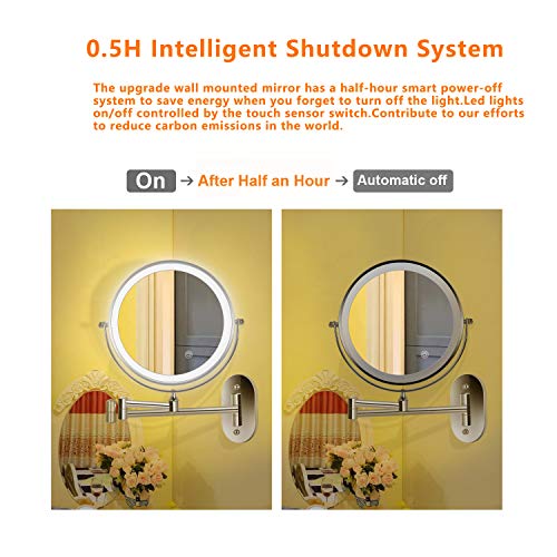 ▶ IL SISTEMA DI SPEGNIMENTO INTELLIGENTE DI MEZZA ORA RISPARMIA ENERGIA: lo specchio montato a parete di aggiornamento ha un sistema di spegnimento intelligente di mezz'ora per risparmiare energia quando si dimentica di spegnere la luce. ai nostri sforzi per ridurre le emissioni di carbonio nel mondo.