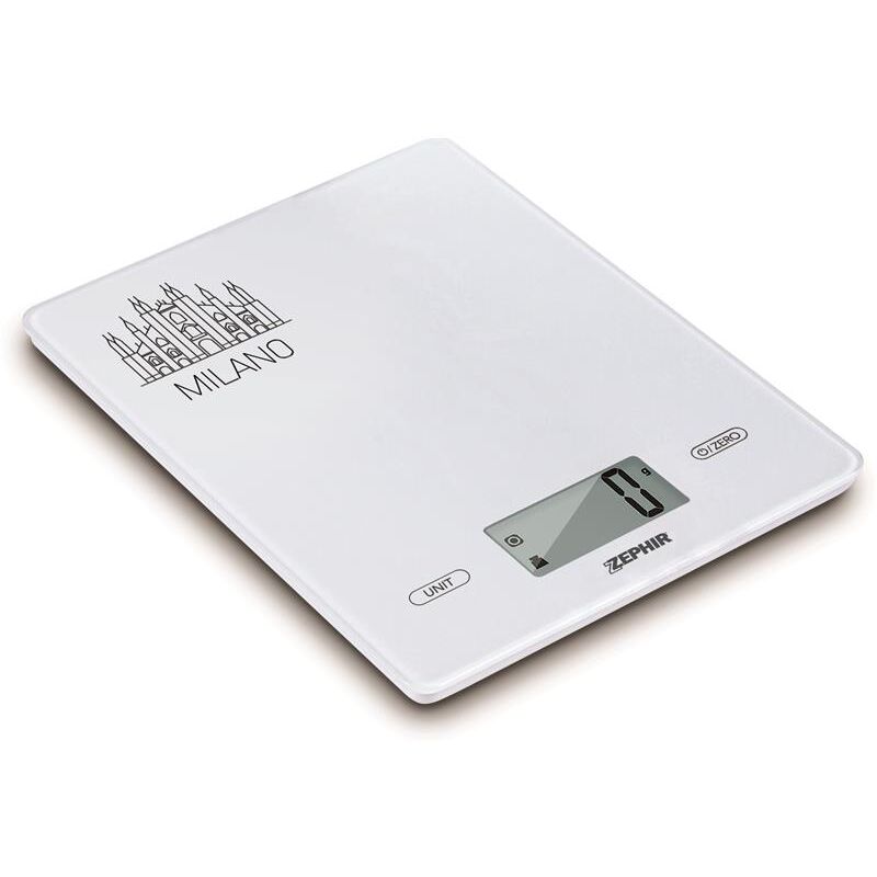 Bilancia linea Digit. Colore bianco con decorazione Milano. Bilancia alimentare.