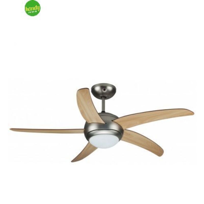 Ventilatore a soffitto 5 Pale in legno - Colore frassino Diametro: 132CM - Con luce Funzione reversibilita' Lampada (70W) non inclusa - Con Telecomando