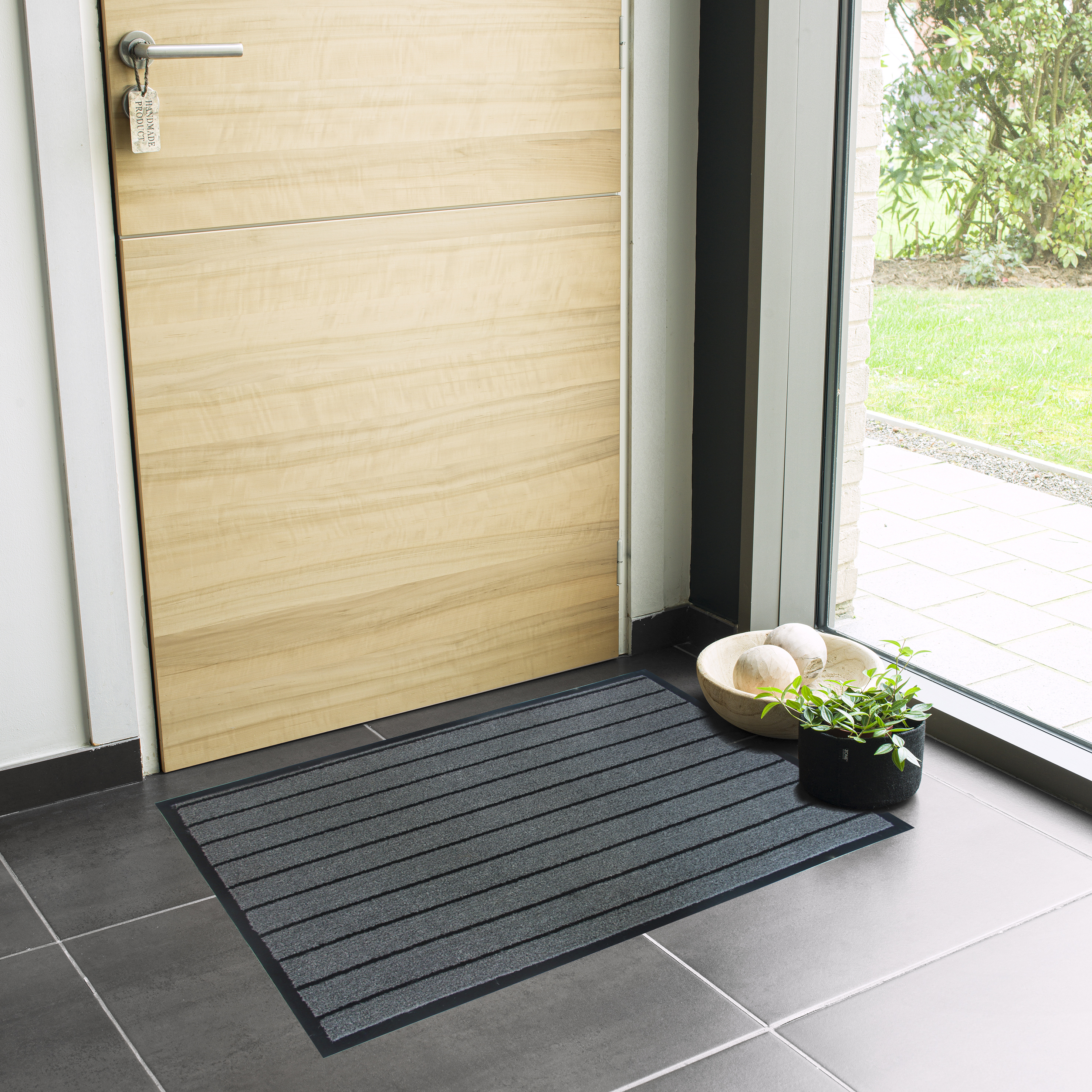Zerbino con motivo disegni, spessore 6, con fondo antiscivolo. Indicato per essere collocato fuori dall'ingresso sul pianerottolo e interno scale. Durevole e resistente