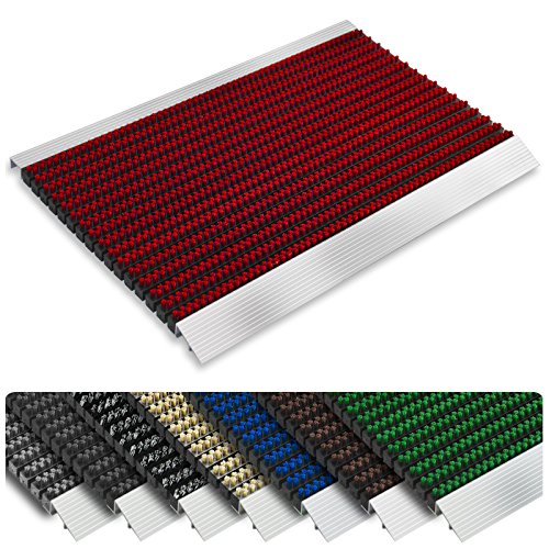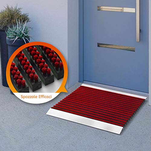 Zerbino Ingresso Casa - Tappeto Entrata Interno, Esterno - Tappeto Asciugapassi Profi Brush con Telaio in Alluminio, Spazzole e Rampa in 8 Colori e 2 Misure - 40x60 cm - rosso