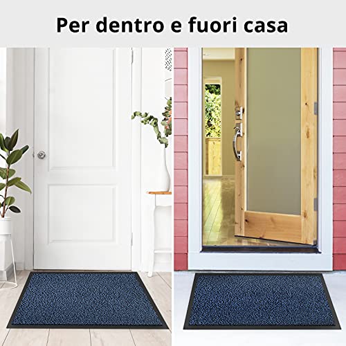 Zerbino Ingresso Casa - Tappeto Entrata Interno, Esterno - Tappeto Asciugapassi Testato - Blu e Nero - 90x300cm