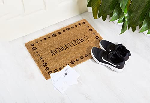 Solo per uso interno, non utilizzare questo zerbino all'esterno. L'uso esterno può danneggiare lo zerbino di cocco e la fibra di cocco potrebbe deteriorarsi, facendo sbiadire l'iscrizione.