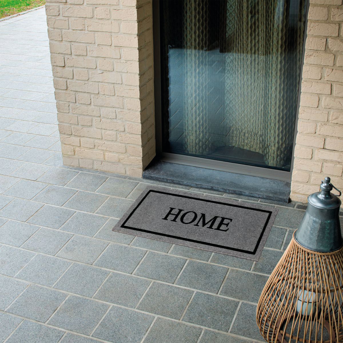 Zerbino con motivo testo, spessore 10, con fondo antiscivolo. Indicato per essere collocato fuori dall'ingresso in esterni esposti ad agenti atmosferici. Durevole e resistente