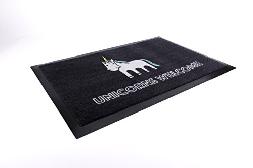 Zerbino Unicorno "Unicorns Welcome" - Idea regalo buffa / regali unicorno / per interno & esterno / 60×40 cm / retro di schiuma di gomma nero / antiscivolo