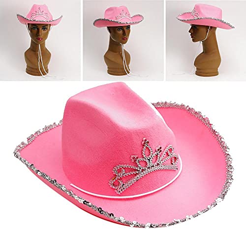 ZEREA Cappello da cowboy stile occidentale in lana/feltro, per donne e ragazze, cappello da cowgirl rosa, cappello da cowboy per feste in costume