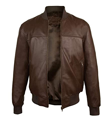 Zerimar Bomber Uomo Pelle | Giacca Bomber Uomo | Giacca in Pelle da Uomo | Giacca in Pelle Uomo Elegante | Giacca Casual da Uomo | Giacca da uomo | Colore Marrone Taglia XL
