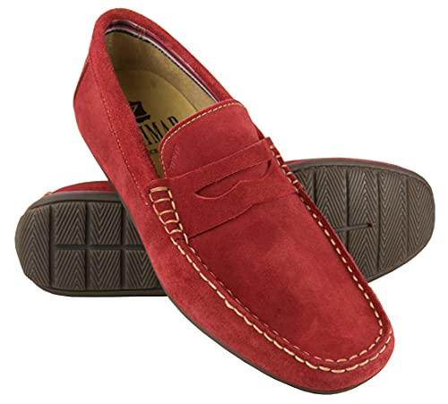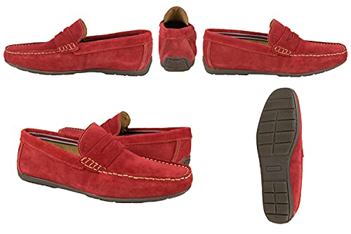 Zerimar Loafers Uomo Pelle | Mocassini Cuoio |Casual Scarpe Uomo | Mocassini Eleganti | Mocassini Loafer Uomo | Colore: Rosso Taglia 44
