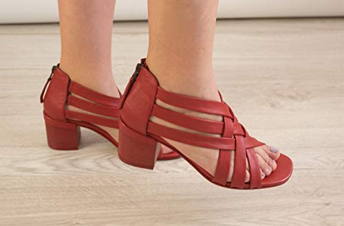 Zerimar Sandali Donna | Sandali Donna Pelle | Sandali Donna Tacco | Sandali Donna Eleganti | Sandali Donna Tacco Pelle | Colore: Rosso Taglia 40