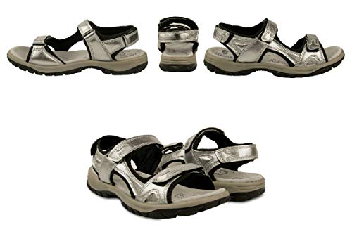 Sandali da trekking in pelle Zerimar Easy Fasten | Sandali da trekking in pelle | Sandali sportivi estivi | Sandali da passeggio per Donna | Sandali sportivi in pelle da donna | Colore: Argento Taglia 3