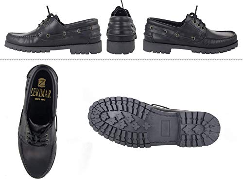 Zerimar Scarpe da Barca in Pelle per Uomo | Nautico per Uomo | Scarpe Barca Uomo | Scarpe Nautica Uomo | Mocassini Uomo (40 EU, Nero)