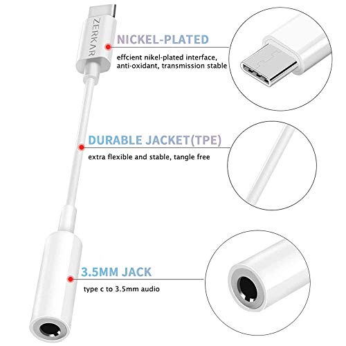 ZERKAR USB C a 3,5 mm Cuffie Adattatore USB Tipo C Jack Cuffie 3,5 mm Audio Adattatore Musica & Chiamata Compatibile con Google Pixel 2/2XL/3/3XL, Huawei P30/P20/Mate10, HTC 10/U11, Essential Bianco