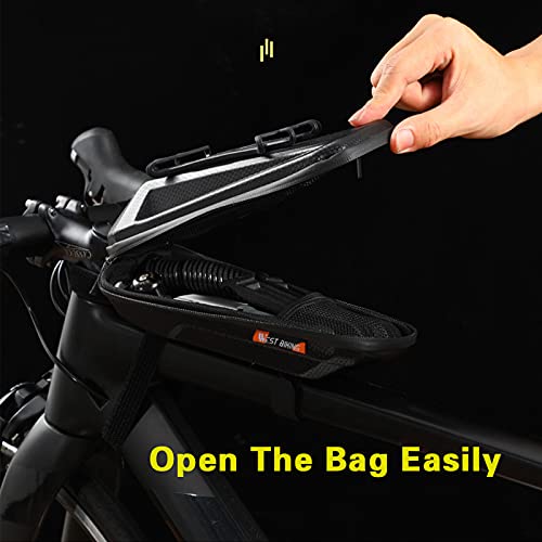 Facile da installare - Tre cinghie adhensive rendono la borsa del telaio della bici più stabile e sicura, anche facile da installare e rimuovere. Con cinghie adhensive regolabili regolabili, la borsa da bici è adatta per la maggior parte delle mountain bike, bici da strada, ecc.