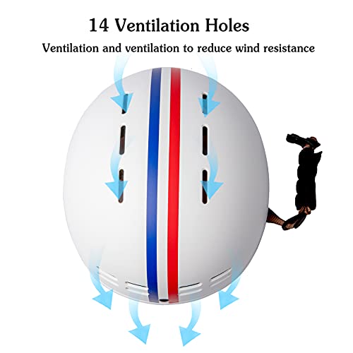 Zeroall Casco Bici Adulto Casco da Bicicletta E-Scooter E-Bike 56-61cm Dimensioni Regolabili Donna Uomo Mountain Bike Helmet, Passa la certificazione CE|CPSC(Bianco+Barra Colore)