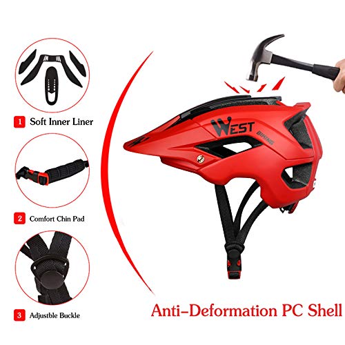 【Assorbimento degli urti e garanzia di sicurezza】Il robusto guscio del PC e la schiuma EPS assorbono urti e impatti. Un innovativo sistema di stampaggio collega la calotta esterna con una spessa fodera in schiuma EPS per creare un casco più forte, offrendo una grande resistenza meccanica e agli urti, proteggendoti sia su strada, in mountain bike e nei tuoi spostamenti quotidiani. Questo casco per mountain bike è certificato secondo gli standard CE.