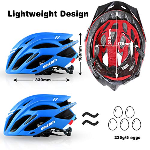 Zeroall Casco Bici Leggero Casco da Bicicletta 58-60cm Regolabile Mountain Bike Bicycle Helmet Casco da Ciclismo per Donna e Uomo Scooter Skateboard Bicicletta(Blu)