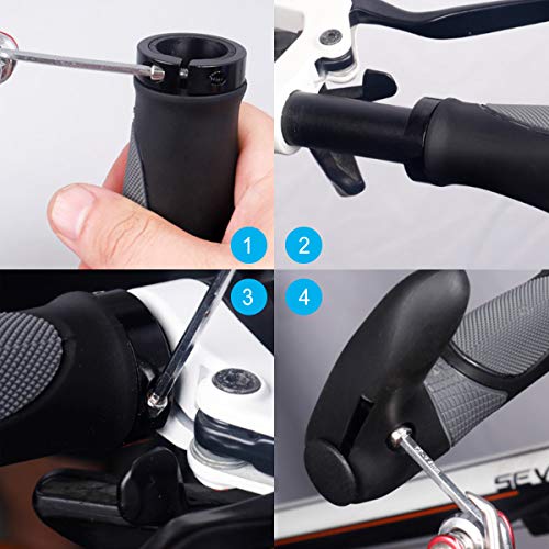 Antiscivolo e sicuro - Il bloccaggio in lega di alluminio a doppia testa evita che le impugnature del manubrio si allentino e scivolino. L'anello interno in alluminio mantiene le impugnature strette sul manubrio della bici. Quindi, quando usi le nostre impugnature per bici, è sicuro guidare.