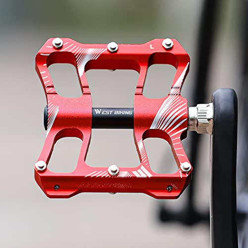 Zeroall Pedali Bici 9/16" Lega di Alluminio Pedali MTB Bicicletta con 12 Perni Antiscivolo, Bike Pedals Piattaforma Pedale da Ciclismo per Bici da Strada Città MTB(Rosso)