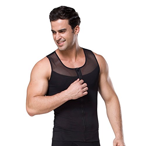 Zerobodys Shirt Netto Zipper Addome Body Shaper Dimagrante Uomo Elastico Sculpting carro Armato della Maglia Che Modella la Maglia SS-M09 (Nero, S)