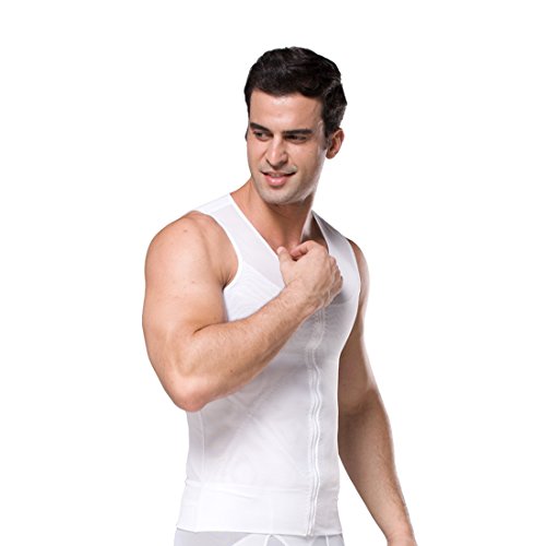 Zerobodys Shirt Netto Zipper Addome Body Shaper Dimagrante Uomo Elastico Sculpting carro Armato della Maglia Che Modella la Maglia SS-M09 (Bianca, S)