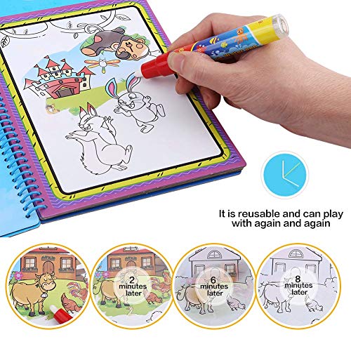 【Concetto di Protezione Ambientale】 - Questo acqua libro da colorare è progettato con il concetto di protezione ambientale. L'unica tintura è l'acqua, il che significa che i bambini possono usare solo l'acqua per disegnare sul libro, La tintura della penna è acqua, comoda e pulita, non ha paura del bambino da mangiare.