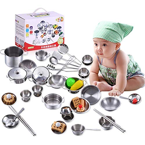 【Materiale durevole】 I giocattoli da cucina per bambini sono fatti di acciaio inossidabile lucidato a mano e l'acciaio inossidabile è più resistente per i bambini rispetto al materiale plastico.