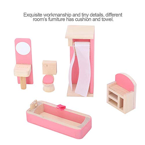 Zerodis 1:12 Mini Casa Bambole Set Mobili Legno Miniatura Furniture Pretend Play Toy Simulazione Life Scene Cucina Camera da Letto Bagno Giocattoli Playset per 3+Anni Ragazze Ragazzi (Restroom)
