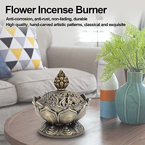 Zerodis Bruciatore di Incenso, Bruciatore di Incenso in Bronzo con Coperchio Bruciatore di Carbone Classico per la Decorazione Domestica Yoga Spa Meditazione